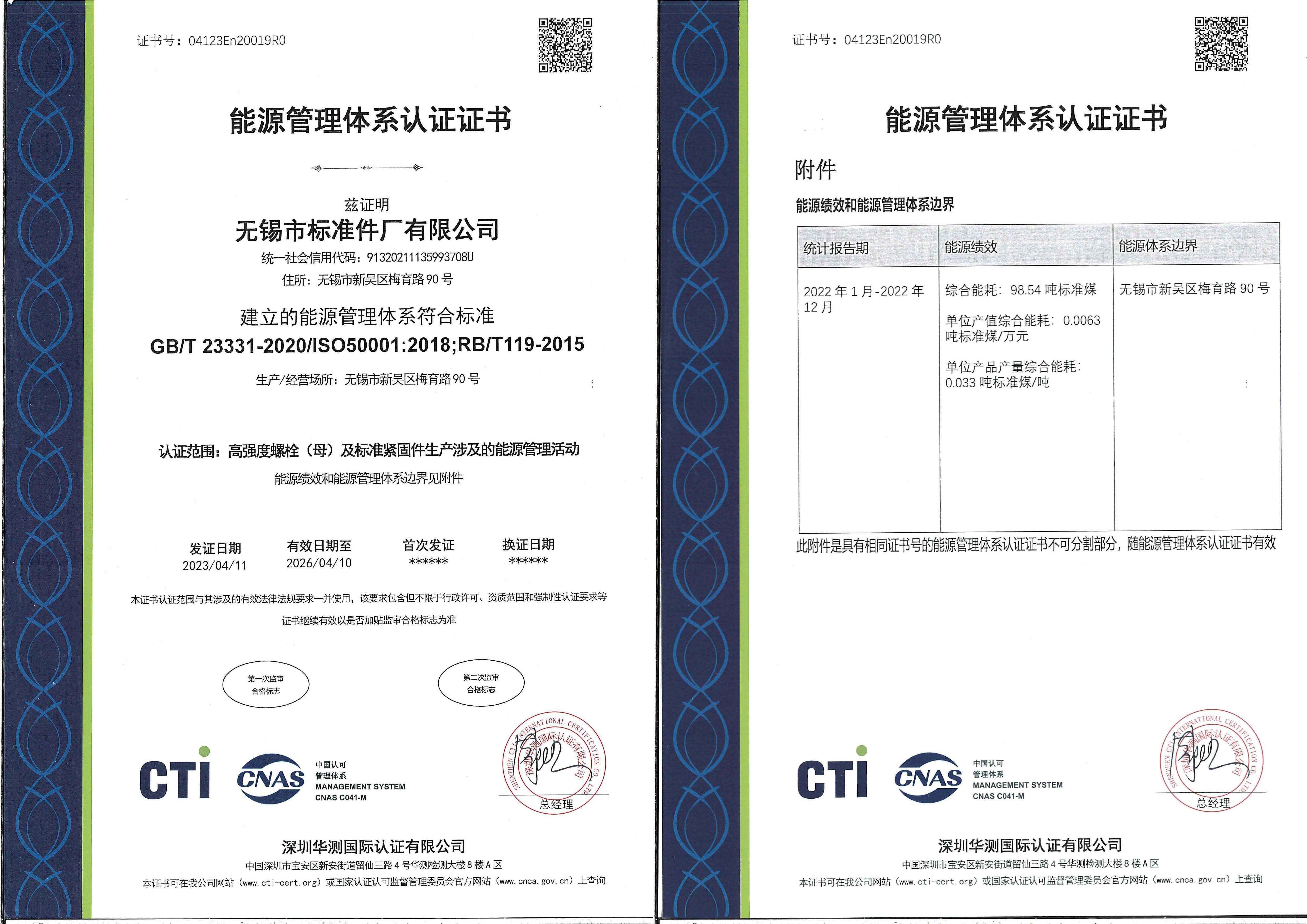 能源管理体系认证证书
